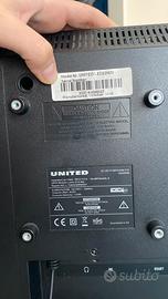 Tevisione marca UNITED. Tutti dettagli nella seconda foto (22’’ LED - 22H26), dotata anche dei vari attacchi per connettere telefono, computer e guardare serie tv. Vendo per trasloco, con ritiro su Milano, zona Amendola (via Previati).