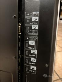Televisione HD Sharp Aquos, con 4 porte HDMI, 1 porta USB, 1 porta HDM, e 2 porte per input AUX audio