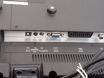 Televisore 20 pollici LCD schermo piatto, Master TL 200, comodissima per studio, cameretta, camera da letto. Ingresso alimentazione, audio PC, coassiale, presa VGA x monitor, presa Scart, slot scheda digitale, USB, HDMI, presa antenna. Uscita x cuffia. Pulsante volume +/- , canale +/- , pulsante Menù, pulsante sorgente, tasto on/off , telecomando.