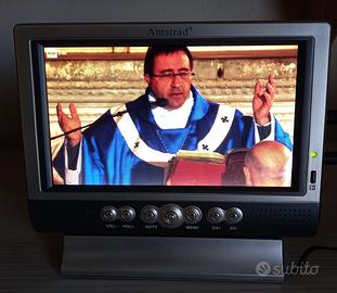 Televisore AMSTRAD 7" acceso unicamente per assicurarsi del funzionamento. Il televisore è a ricezione analogica. Le immagini della tv in funzione sono state ottenute con un decoder digitale ( che non è incluso nella vendita).