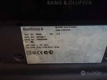 Televisore Bang&Olufsen BeoVision 6-22, completo di stand da tavolo. Testato con telecomando Beo4 (già venduto) e cavo di alimentazione standard (non incluso), si accende ma il completo e corretto funzionamento è da verificare. Formula visto e piaciuto. Prezzo leggermente trattabile.