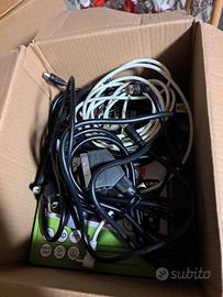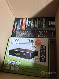 televisore Sony con tutti i cavi, telecomando e decoder sempre con telecomando.