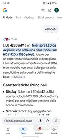 TV 42 pollici LG perfettamente funzionante si puo collegare col telefono x vedere altro vendo causa nuovo acquisto prezzo trattabile