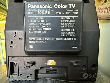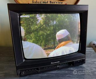 Vendo televisore a tubo catodico (CRT tv) Panasonic TC-1485IR, ingresso antenna (analogico) e scart, ottimo per retrogaming collegando consolle classiche (Playstation, Super Nintendo…). Perfettamente funzionante come da fotografia, abbastanza compatto (14 pollici) e quindi adatto ad ogni stanza. Per qualsiasi informazione o foto in più scrivete senza problemi Prezzo trattabile