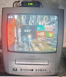 Televisore TV CRT Philips 14 pollici con videoregistratore VHS e Smart TV Android integrato.