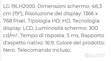Televisore LG 19" con telecomando mod. 19LH2000