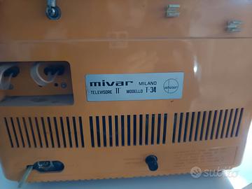 Televisore in bianco e nero Mivar Milano T-34 uscito nel 1969, diagonale da 11 pollici, pezzo decisamente vintage! Una delle due antenne è mancante (vedi foto), da arredamento o esposizione, non credo funzioni più. Da anni in una stanza mai più utilizzata.