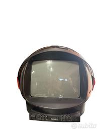 Iconico televisore Philips dal design futuristico “Space Age”, realizzato negli anni ’70. Il suo caratteristico guscio sferico rosso e nero lo rende un oggetto da collezione molto ricercato, perfetto per arredamenti retrò o modernariato. Modello con comandi frontali manuali e cupola fumé apribile. Ottimo elemento decorativo, con grande impatto visivo. Condizioni buone, da esposizione o collezione.