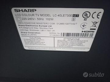 Tipo LC-40LE730NET SHARP funzionante problema con tasto di accensione a volte non si accende +telecomando+AN-WUD630-TV Wireless NON SPEDISCO