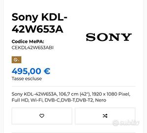 Televisore Sony perfettamente funzionante usato pochissimo svendo causa trasloco. Non spedisco,no perditempo. Allego prezzo attuale