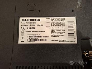 Vendo TV Telefunken modello TE24275B30CXB da 24 pollici, in ottime condizioni e perfettamente funzionante.