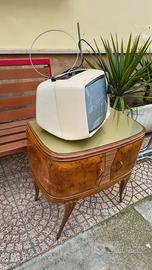 Splendido televisore portatile d'epoca (anni '70), un vero pezzo di design Space Age perfetto per arredamento vintage, modernariato o per collezionisti di tecnologia retro.