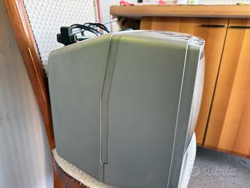 Splendido televisore vintage Grundig Super Color C 2204 (Serie S 1615) originale degli anni '80. Un pezzo di design iconico con scocca argentata, perfetto per un tocco Space Age o industriale al tuo arredamento, o per completare una postazione di retrogaming. Caratteristiche Principali: • Marca: Grundig (Made in Germany/Italy). • Modello: Super Color C 2204 / CUC 41 KT IT. • Design: Estetica compatta color argento con pulsantiera frontale meccanica tipica dell'epoca. • Condizioni estetiche: Molto buone come da foto, la scocca è integra e i tasti sono tutti presenti. • Dotazione: Include antenna originale telescopica integrata e cavo di alimentazione. Ideale per: • Collezionisti: Un classico della tecnologia europea anni '80. • Retrogaming: Perfetto per collegare vecchie console (NES, Commodore 64, ecc.) tramite ingresso antenna. • Arredamento: Ideale per vetrine, studi, set fotografici o locali a tema vintage. Televisore Vintage Gruding Super Color C 2204 - Anni '80 - Space Age