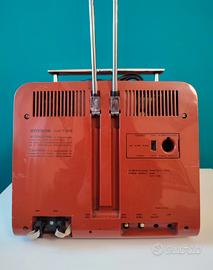 Televisore Voxson anni 70 modello T1202 design di Rodolfo Bonetto space Age materiale plastico, segni del tempo, si accende e si sente il suono ma non si vede causa cambio frequenze.