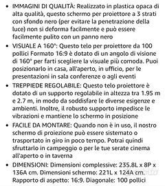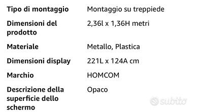 Telo Proiettore da 100 Pollici 4K HD Formato 16:9