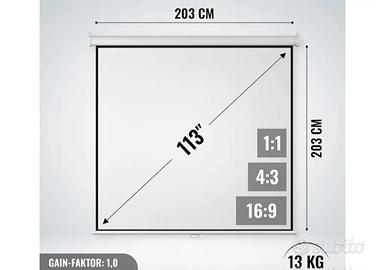 VENDO Jago Telo Proiettore mai usato -con supporto , avvolgibile,16:9/4:3/1:1 HD 4k 3D-Pannello , schermo per proiettore , proiezione , telo per videoproiettore,schermi , letto (203x203cm-113").Telo Proiettore è completamente avvolgibile,con un meccanismo di avvolgimento automatico.