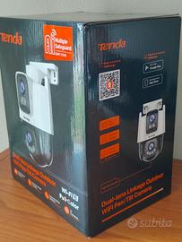 Telecamera di sicurezza da esterno Tenda CH9, nuova, soluzione 2-in-1 con doppia lente 2K che sostituisce due telecamere tradizionali, offrendo copertura totale a 360° senza punti ciechi. Ideale per ingressi, giardini, cortili e aree esterne.