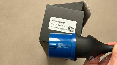 Adattatore/Connettore presa industriale blu 16A originale Tesla per connettore mobile, caricatore, carichino, UMC 2. * Diametro spina: 42 mm * Velocità di ricarica massima: 3,7 kW * Autonomia massima oraria: 24 km/h Condizione pari al nuovo, utilizzato qualche volta. Con scatola originale come da foto