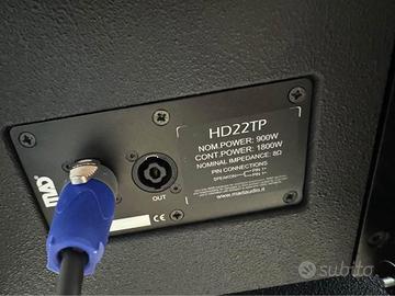 Vendo per inutilizzo nº6 diffusori Line Array Mad Audio HD22TP Completi di Flight Bar e Case per il trasporto nuovi appena costruiti. Il prezzo comprende tutto questo elencato. Caratteristiche: 2x10" 18Sound nd woofer 1x1,4" B&C nd driver 900W nominal / 1800W continuous