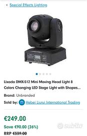 Coppia come da foto ... Bellissime teste mobili moving head led mini spot marca lixada Articoli professionali, con sorgente luminosa led potentissima da 30 watt Le teste sono perfettamente funzionanti in condizioni pari al nuovo Presente scatola originale, imballaggio originale in polistirolo, staffe per aggancio su stand stativo treppiedi, cavo alimentazione, cavo audio canon xlr per collegamento a mixer centralina dmx Questi proiettori luci possono funzionare in automatico, a tempo di musica, collegati tramite gestione remota. Inoltre hanno 4 funzioni contemporaneamente e di preciso : - effetto strobo flash psichedeliche - effetto cambio colore multicolor - effetto movimento pan tilt - effetti forme e gobos Articoli molto professionali per feste party pub locali discoteca service live convegni palestra karaoke cerimonie dj hobby. Migliori di luci analoghi tipo scanner led o alogeni effetto doppio derby laser verdi rossi par led fari alogeni ecc... Strumento luci migliori di sagitter cameo coemar beamz eurolite prolights martin Volendo posso prendere in considerazione lo scambio con altri strumenti audio musicali tipo casse attive amplificate mixer dj cdj xdj radio microfono stereo consolle Scrivetemi per chatt ... poi scambio cellulari