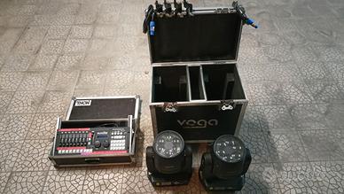 Vendo in blocco coppia di teste mobili Lightmaxx Vega 3-way 6 LED da 40w RGBW (con zoom motorizzato per usarle come wash o come beam, e corpo ottico rotante per effetto tipo prisma), flightcase ruotato a due posti, 4 ganci omega per appendimento, 2 cavi powercon di alimentazione, e mixer luci Eurolite Move Pro 512 con fader motorizzati, con scene statiche e di movimento per le due teste mobili già salvate. Includo flightcase per il mixer. No sconti, no permute. Spedizione a carico dell'acquirente. Possibile visione e prova a Lecce.