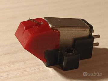 Testina, cartridge Goldring ELEKTRA NOS (New Old Stock) in box dedicato con viteria di montaggio, istruzioni e specifiche. Technical specifications: Frequency Response: 20 Hz-2 0kHz±3 dB Channel Balance: 2 dB a 1 kHz Channel Separation: 20 dB a 1 kHz Sensitivity: 5 mV±2 dB, 1 kHz a 5 cm/sec Static Compliance: 16 mm/N Equivalent tip mass: 0.7 mg Vertical Tracking Angle: 26° Stylus Radius: Elliptical .0007” x .0003” (18×7) Stylus Type: Replaceable Load Resistance: 47,000 Ohm Load Capacitance: 150-400 pF Internal Inductance: 560 mH Internal Resistance: 700 Ohm Cartridge Weight: 4.2 g Fixing Centre: 0.5” (12.7 mm) Playing Weight: 1.5-2.0 g (1.7 g nom.)