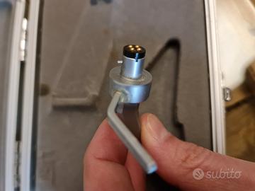 Testina Ortofon Concorde CON PUNTINA DA SOSTITUIRE. Da segnalare che è stato reincollato il braccetto per sollevarla, come ben visibile in foto. Completa della sua valigetta originale per il trasporto.