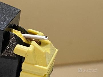 Vendo per inutilizzo splendida testina magnetica Shure M104E, un classico dell'alta fedeltà anni '80/'90, ricercata per il suo tipico suono caldo e l'ottima tracciabilità.Il set è un Full Kit originale ideale per collezionisti o appassionati di vinile, conservato con estrema cura.Il pacchetto include:Corpo testina Shure M104E: Originale, testato e perfettamente funzionante.Stilo originale Shure N104E: Usato poco, diamante presente e ben definito (vedi foto macro allegata), cantilever dritto e sospensione ancora elastica.Secondo stilo Shure: Incluso come pezzo di ricambio (mancante di punta/diamante), utile per recuperare le plastiche originali.Adattatore T4P a 1/2 pollice: Originale Shure, permette di montarla sia su giradischi Technics (attacco P-Mount) che su bracci standard a vite (Thorens, Rega, ecc.).Packaging Completo: Scatola esterna in cartone, inserti protettivi, custodia rigida Shure in plastica e manuale tecnico originale con specifiche.Condizioni di vendita:Trattandosi di un componente Hi-Fi vintage e consumabile, l'oggetto viene venduto con la formula "visto e piaciuto" (as-is). Non è prevista garanzia post-vendita o reso una volta utilizzato, data la natura delicata dello stilo.