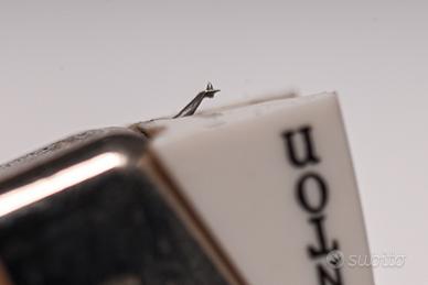 Diamante perfetto come in foto Con la sua scatola in acciaio e quella esterna in plexiglass 881S con stilo originale Stereohydron D81S, ha un suono fluido, pieno e tridimensionale, ritmato, incisivo e seducente, con medi e alti perfetti. Eccezionalmente buono! È una testina davvero magnifica per bracci a bassa massa. Non l'ho mai usata con un braccio a massa maggiore e sospetto che questo potrebbe cambiare parecchio le cose. Ma è di gran lunga la migliore testina MM che abbia mai avuto. Con la D81s montata richiede un po' di attenzione nella configurazione, ma una volta regolata correttamente, surclassa tutte le altre e porta anche un sistema modesto a un livello superiore. Le foto sono state fatte con il flash, ha "sparato" un po le ombre...