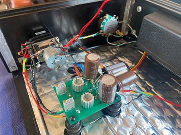 Costruzione in doppio telaio unito , risulta effettivamente come un unico telaio,, per motivi di cablaggio non scomponibile tranne che con modifica . Costruito senza badare a spese con la migliore componentistica possibile.. Potenziometro TKD motorizzato asservito da Telecomando, Selettore ingressi Electroswitch 6x2 sei ingressi, Condensatori Elna Silmic II, Cablaggi in rame 99,99% Neotech, stagno utilizzato WBT, Connettori Rca Klei perfect harmony.. 3 ingressi e un uscita.