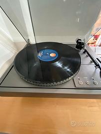 Thorens TD 104 MK II, un classico dell'alta fedeltà prodotto in Germania. Questo esemplare si distingue per un livello di conservazione rarissimo, ideale per chi cerca un oggetto autentico e mai manomesso. Dettagli di Autenticità e Stato Tecnico: Conservato Originale: Sul plinto è ancora presente l'etichetta originale di fabbrica con le istruzioni per il trasporto (in tre lingue), dettaglio che testimonia la cura maniacale e l'integrità storica di questo pezzo. Cavi RCA Originali: Il giradischi monta i suoi cavi originali di fabbrica. Come tipico di molti componenti vintage, possono presentare una leggera sensibilità al contatto (risolvibile con spray disossidante), ma sono stati mantenuti per non alterare il valore collezionistico. Alimentazione Sicura: Fornito con alimentatore moderno nuovo (compatibile) per garantire tensioni stabili e sicurezza elettrica superiore rispetto ai vecchi trasformatori vintage. Testina e Stilo: Equipaggiato con testina ADC QLM 30 MK III. Lo stilo (ago) è in ottime condizioni, pronto a riprodurre i vostri vinili con un suono caldo e fedele. Controlli Elettronici: Tasti a sfioro (touch) perfettamente reattivi e LED rossi di stato funzionanti. Regolazione fine della velocità tramite stroboscopio a specchio integrato. Estetica e Meccanica: Cappa (Dust Cover): Originale, eccezionalmente lucida e trasparente, senza graffi o crepe. Meccanica: Piatto in alluminio e sottopiatto estremamente puliti, privi di ossidazione. Cinghia integra e velocità stabile.