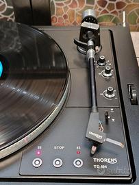 Vendo piatto phono giradischi stereo manuale Thorens TD-104 trazione a cinghia, in ottime condizioni, perfettamente funzionante, comprensivo di manuali in formato elettronico .pdf, monta testina Ortofon, Hi-fi vintage anni '70. N.B. Cinghia di trazione nuova In caso di spedizione non utilizzo il servizio di tuttosubito. Accetto altro pagamento con video dimostrativo del funzionamento Caratteristiche: -Anno di produzione: 1978 -Base colore nero, coperchio in plexiglass con qualche graffio/abrasione -Testina Ortofon -Tipo: Manual Turntable (uso manuale) -Tasti selezione velocita: 33 & 45 giri -Tasto selettore "Stop" (ferma la trazione) -Selettore Cueing (alza e abbassa il braccio) -Trasmissione: Belt-Drive (trazione a cinghia) -Speed Control: Electronic -Wow and flutter: 0.05% WRMS -Rapporto segnale rumore: 65dB -Piatto: 310mm in lega di zinco da 1.6Kg -Braccio: TP 22 tipo di equilibrio statico, braccio lineare -Lunghezza effettiva: 22.2cm -Sporgenza: 1,6cm -Peso cartuccia utilizzabile: 7.5g -Dimensioni: L-43Cm x H-12.5Cm x P-35.5Cm -Peso: 5.5kg Per informazioni non esitate a contattare Eventuale spedizione in TUTTA ITALIA TD-104 TD104 TD 104 105 TD105 TD-105