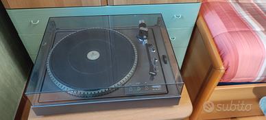 giradischi a cinghia con ritorno automatico a fine disco, controllo della velocità per 45 e 33 giri. alimentazione separata e sostituzione cavo uscita segnale con pin RCA dorati. testina Grado. Data la delicatezza dell' oggetto non si spedisce.