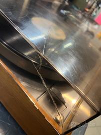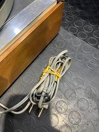 Thorens td 166 adattato su un plinto di un dual ( forse era su un compatto) . cappa con spaccature incollate vissuta ma fà il suo lavoro. Testina Shure m75 con stilo nuovo . Vissuto ma perfettamente funzionate . Presenta comunque bene . Ottima base per chi lo vuole customizzare oppure super utilizzabile da subito con un costo basso . Cavetti rca placcati e è stato anche agginto il cavo di massa della testina non sempre necessario per il collegamento .