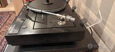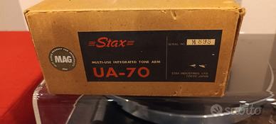 Thorens TD 520 + Braccio Stax UA70 da 12 pollici. Condizioni estetiche e di funzionamento perfette. Il braccio completo e contenuto nel suo astuccio originale. A corredo è compresa la famosa e rarissima testina elettrostatica CP-X e la canna per il braccio con attacco delicato (visibili nell'ultima foto). Non spedisco, esclusivo ritiro a mano.. Prezzo leggermente trattabile dopo visione ed ascolto