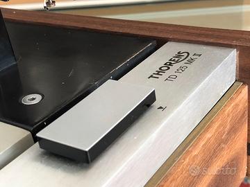 Thorens TD125 MKII – Doppio Plinto Noce italiano Vendo iconico giradischi Thorens TD125 MKII, un pezzo di storia dell'alta fedeltà, in condizioni di funzionamento impeccabili. Il motore è silenziosissimo e tiene perfettamente la velocità su tutti i giri (16, 33, 45), sostituiti condesatori motore e lubrificate meccaniche da tecnico speciliazzato Questo esemplare è unico per la dotazione di basi incluse, offrendo sia l'estetica classica che una soluzione high-end moderna: Doppia Base (Plinto): Base Artigianale in Noce Italiano Massello: Realizzata su misura da un professionista del settore (costo di realizzazione 400€). Oltre a un impatto estetico incredibile, la massa del legno massello migliora notevolmente lo smorzamento delle vibrazioni. Base Originale Thorens: Inclusa nella vendita, impiallacciata, per chi desidera mantenere l'originalità storica del pezzo ( visibile nell'ultima foto ) Meccanica ed Elettronica: Perfettamente funzionanti. Stroboscopio luminoso e preciso. Coperchio Presente cover in plexiglass non originale, in ottime condizioni, perfettamente trasparente. Braccio: TP-16 originale , non funziona benissimo antiskating, ma è settato bene e non da nessun problema Il TD125 MKII è la base ideale per impianti di alto livello. La manutenzione è stata eseguita regolarmente e la presenza della base in massello lo rende un oggetto d'arredo oltre che un dispositivo audio di riferimento. possibile consegna amano zona lecce brindisi taranto bari utilizzabile con accuphase, macintosh, revox, thecnics 1200, gyrodec, thorns, proac, jbl, spectral, yamaha amplificatore integrato eseguiro un imballaggio a regola d'arte con utilizzo di spugne da divano e schiume . offro massima serietà e pretendo serietà . non rispondo ad offerte ridicole e blocchero contatto senza piu possibilità di acquisto grazie