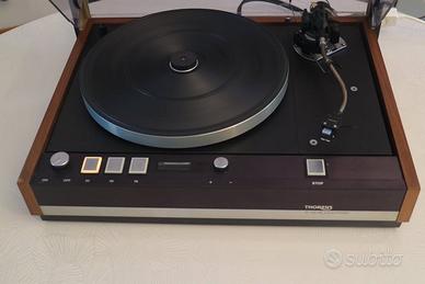 Thorens TD 126 MK II con braccio SME. Piatto leggendario, completamente controllato e riportato allo splendore originario. Cinghia di trscinamento e puntina (SHURE) nuove di zecca, tagliando generale per un funzionamento perfetto. Coperchio rinforzato e lucidato, puntina vecchia nella scatolina che si vede in foto. Pronto per suonare. NO SPEDIZIONE, NO ALTRE FOTO, NO PERDITEMPO. Finché l'annuncio appare, l'oggetto è disponibile, quindi NON FATE DOMANDE SULLA DISPONIBILITA' perché non risponderò a simili messaggi. Prezzo leggermente trattabile.