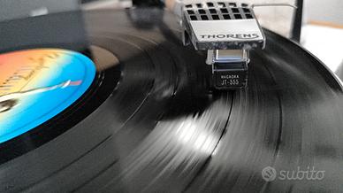 vendo in condizioni rarissime da trovare thorens TD 160 inscatolato, monta testina nagaoka jt555, è stato solo acceso pulita la cinghia e testato per verificare il funzionamento. non presenta graffi o botte plinto e coperchio perfetti, dima per la testina compresa. scatola di cartone originale un po' rovinata di colore. solo scambio a mano, così lo si prova assieme, non ho idea da quanto fosse chiuso nella sua scatola, ho pulito la cinghia e messo un pelo di olio nel perno ed è partito regolarmente. sicuramente ci sarà da pulire gli RCA con un disossidante spray anche se io provandolo non ho avuto problemi.