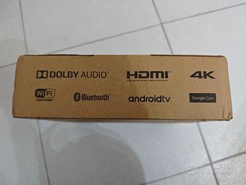 Decoder DVB-T2 con android TV, 32GB memoria. Chromecast incorporato, Google Play e app scaricabili. Completo di scatola telecomando cavo HDMI e accessori.