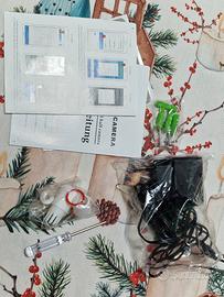 Vendo videocamera di sicurezza Ton Ton hd mini camera solo provata una volta comprensiva di tutto quello che vedete in foto (libretti, alimentatore, sticker, viti di fissaggio e cacciavite). Video camera non acquistabile in Italia con varie funzioni: sensore di movimento che registra ad ogni movimento e lo scarica sull'applicazione, possibile anche di notte grazie alla forte luce e possibilità di vedere e parlare dal telefono attraverso la videocamera.