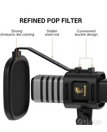 TONOR Microfono USB, Cardioide Condensatore Computer PC Mic con Supporto per Treppiede, Filtro Pop, Supporto Shock per Gaming, Streaming, Podcasting, YouTube, Voice Over, Twitch, Discordia, TC30
