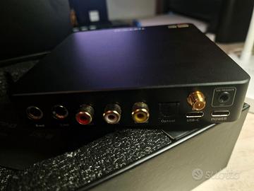 Ultima versione dell'apprezzato DAC della Topping D50. Vendo in condizioni pari al nuovo. Acquistato su Amazon nell'Aprile 2024 e usato pochissimo. Preferisco lo scambio a mano. Nell'imballo è inserito tutto ciò che è previsto nella confezione originale, compreso il telecomando, l'antennina, cavetti ecc. Il DAC e' aggiornato all'ultimo firmware. Grazie dell'attenzione.