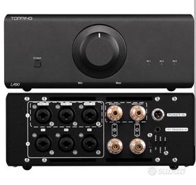 Vendo splendida coppia di finali di potenza Topping LA90 Discrete (LA90D), il riferimento assoluto per chi cerca trasparenza e dettaglio. I dispositivi sono in condizioni ottime. Perché scegliere la versione Discrete: A differenza della versione standard, la "Discrete" utilizza circuiti NFCA discreti che garantiscono una dinamica superiore e un suono ancora più naturale. Sono macchine incredibili, con prestazioni misurate ai vertici delle classifiche mondiali. Specifiche Tecniche (come da foto allegate): Potenza in modalità Mono (Bridge): 180W x 1 @4Ω / 220W x 1 @8Ω. Potenza in modalità Stereo: 120W x 2 @4Ω / 66W x 2 @8Ω. Rapporto Segnale/Rumore (SNR): 143dB. Distorsione (THD+N): <0.0001%. Ingressi: 3 x XLR / TRS bilanciati. Funzioni: Gain a 2 step, modalità bypass per uso come finale puro. Condizioni di vendita: Prezzo: 1.200 € per la coppia (Trattabili). Accessori: Includo gli imballi originali, alimentatori e tutta la dotazione di serie. Consegna: Disponibile per prova d'ascolto e ritiro a mano a Lonigo (VI). Possibile spedizione tracciata con imballo super protetto. Prezzo di listino attuale su Amazon: circa 900€ per singolo modulo. Risparmio netto di 600€ rispetto al nuovo per un prodotto perfetto.