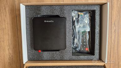 Vendo in perfetto stato: Topping M50 è un lettore di file desktop ad alta risoluzione di nuova concezione. Basta collegarlo al DAC e all'amplificatore per prepararsi a un'esperienza audio ad alta risoluzione davvero coinvolgente. Connessioni multiple di ingresso e uscita Il Topping M50 è un hub completo per tutte le tue esigenze musicali. Il dispositivo dispone di numerose porte di ingresso e uscita, tra cui USB OTG, USB Type-C e Bluetooth ad alta risoluzione per gli ingressi. In termini di uscite, troviamo diverse porte di uscita digitali, tra cui coassiale, ottica e I2S. Supporta segnali PCM e DSD ad alta risoluzione Il lettore Topping M50 legge numerosi formati. Supporta Flac, Wav, Ape, AIFF, M4A, WMA Lossless, MP3, AAC, DSF e molti altri. Supporta segnali PCM ad alta risoluzione a 24 bit/384 kHz e segnali DSD256 nativi. equalizzatore a 10 bande Utilizzando una scheda MicroSD o una chiavetta USB, si ottiene un equalizzatore a 10 bande completo di diverse preimpostazioni e supporto per l'equalizzazione a gamma completa. Funzione bridge USB Il Topping M50 è dotato di due porte USB OTG e una porta USB Type-C. È possibile utilizzarla per collegare l'M50 a un PC, un telefono cellulare o un tablet, supportando l'M50 come bridge USB. Grazie al supporto USB OTG, è possibile collegare unità flash e schede MicroSD all'M50. Supporto Bluetooth bidirezionale ad alta risoluzione Le cuffie Topping M50 offrono connettività Bluetooth bidirezionale con supporto per codec LDAC ad alta risoluzione. È possibile riprodurre in streaming musica ad alta risoluzione dallo smartphone con un bitrate fino a 24 bit/96 kHz. Le Topping M50 possono essere abbinate anche a cuffie Bluetooth con codec LDAC e AptX ad alta risoluzione. Supporta AirPlay e DLNA Il Topping M50 offre connettività wireless Apple AirPlay 1 e DLNA. AirPlay semplifica il collegamento del Topping M50 al dispositivo sorgente Apple (come iPhone, iPad e MacBook) senza bisogno di cavi.