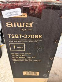 Vendo torre bluetooth marchiata Aiwa modello TSBT-270BK di colore nero. La torre è nuova, mai utilizzata, cedo causa inutilizzo. Spedizione a carico dell’acquirente, c.a. 12 euro.