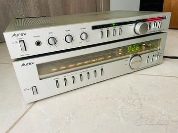Propongo accoppiata made in japan toshiba aurex vero vintage, amplificatore sb-a70 e radio tuner st-s60 entrambi in buone condizioni estetiche e perfettamente funzionanti, l amplificatore eroga 50watt per canale ed è costruito veramente bene, ha la possibilità di separazione tra sezione pre e finale..ottima entrata phono per giradischi, la radio riceve bene in stereofonia.