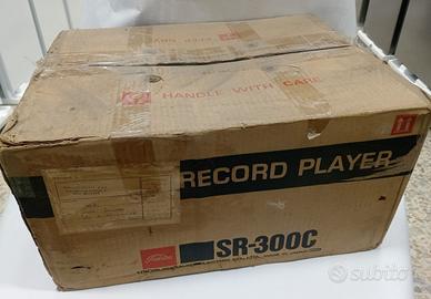 Toshiba Giradischi SR-300C Made In Japan produzione 1973, con imballo di cartone originale, libretti di istruzione e piccoli accessori, coperchio in plexiglass lesionato ma funzionante, funziona ma meglio fare revisione, presente testina ma non la puntina, posso spedire, vista l'eta' pubblico come "usato con parti guaste"