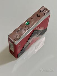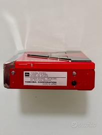 Walkman della Toshiba prodotto nel 1984. Acquistato da me e conservato sino ad oggi. Piuttosto raro da trovare nelle condizioni che si possono vedere in foto. Funziona in Play (anche in reverse) e va in stop. Fa fatica sul riavvolgimento e sull'avanzamento veloce. Dipende dal tipo di cassetta e/o dalla lunghezza del nastro. Pertanto si raccomanda di eseguire una manutenzione ordinaria per via del fatto che, non essendo mai stato aperto, le cinghiette hanno più di 40 anni di vita. E' piccolo quanto una normale audiocassetta, come potete vedere dalle foto. Ottima la resa sonora in uscita sulle cuffie. Oltre all'AutoReverse, ha anche il supporto Dolby NR e la posizione per le cassette chrome e metal. Le funzioni di avanzamento e riavvolgimento veloci si attivano premendo sui tasti posti in corrispondenza dei due piolini su cui è avvolto il nastro (funzione più unica che rara). Vano batterie (2xAAA) pulito e senza alcuna corrosione. Venduto con la sua custodia. La cassetta mostrata nelle foto non è in vendita. E' stata utilizzata solo per dare senso delle dimensioni del walkman Da segnalare che manca una vite sul posteriore che non pregiudica integrità e funzionalità e manca il copritasto del selettore posizione cassette (normal, metal chrome) che si può comunque utilizzare con la punta di una biro oppure con un piccolo oggetto appuntito. Se siete interessati, posso inviare foto aggiuntive e video del suo funzionamento.