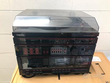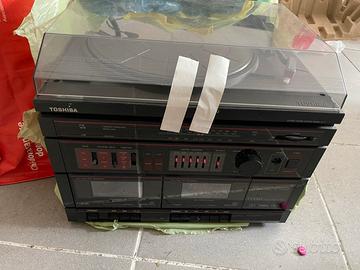 Vendo Toshiba studio sound system model SL-3 con casse, dischi vinili e cassette Vintage per appassionati