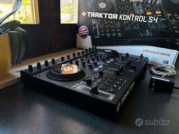 Vendo consolle dj Traktor Kontrol S4 MK1 native Instruments, perfettamente funzionante e in eccellente stato estetico. Sul controller è stata applicata una skin protettiva che ne rinnova l'estetica e protegge la superficie originale da graffi o segni di usura. Include la confezione originale con il suo alimentatore e il cavo USB di collegamento. Segnalo che la licenza software NON è inclusa nell’offerta.